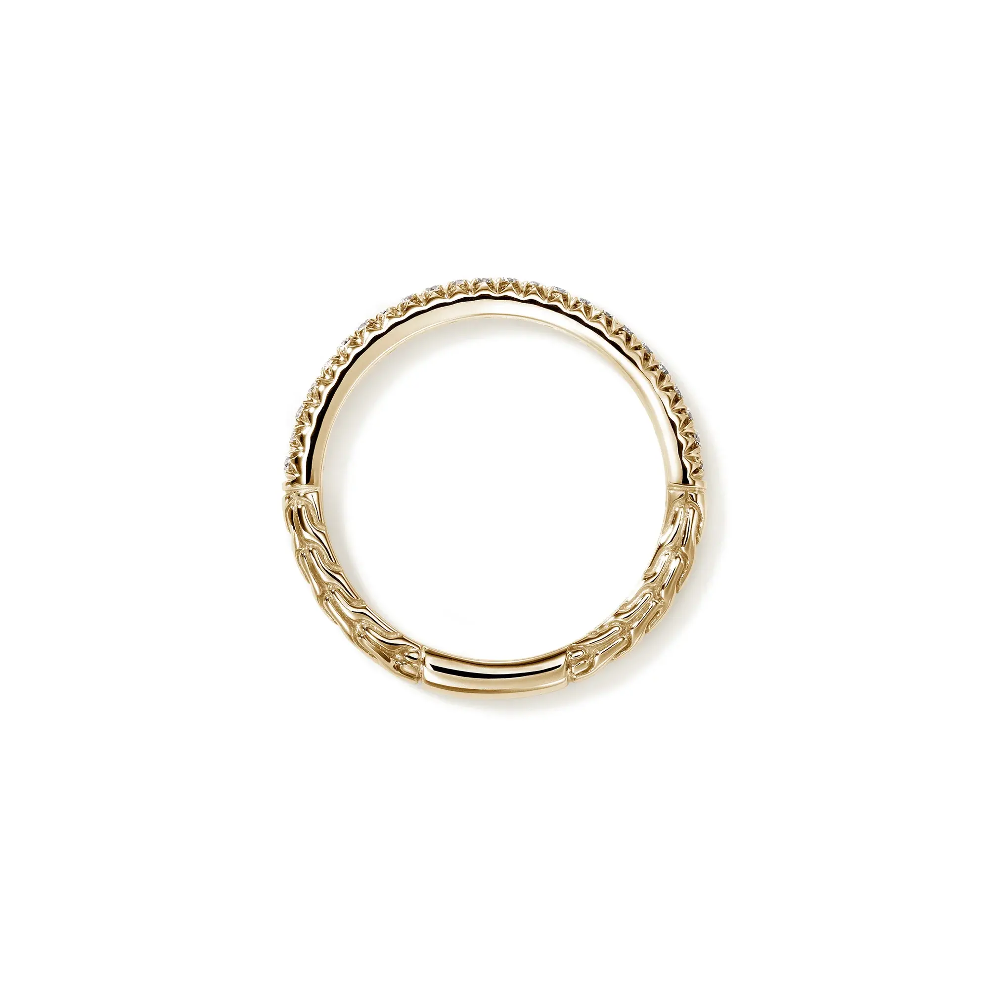 Bague en or jaune 14K, pavée de diamants 0.24ct provenant de sources éthiques. Collection JH Essential. Largeur de l’anneau : 2 mm.
