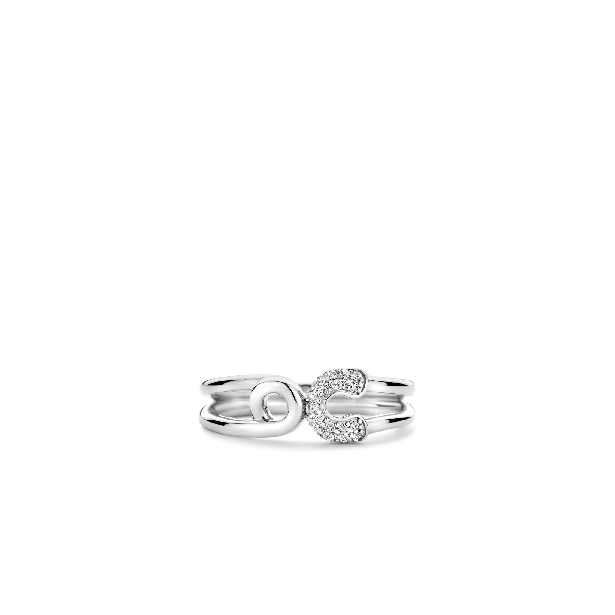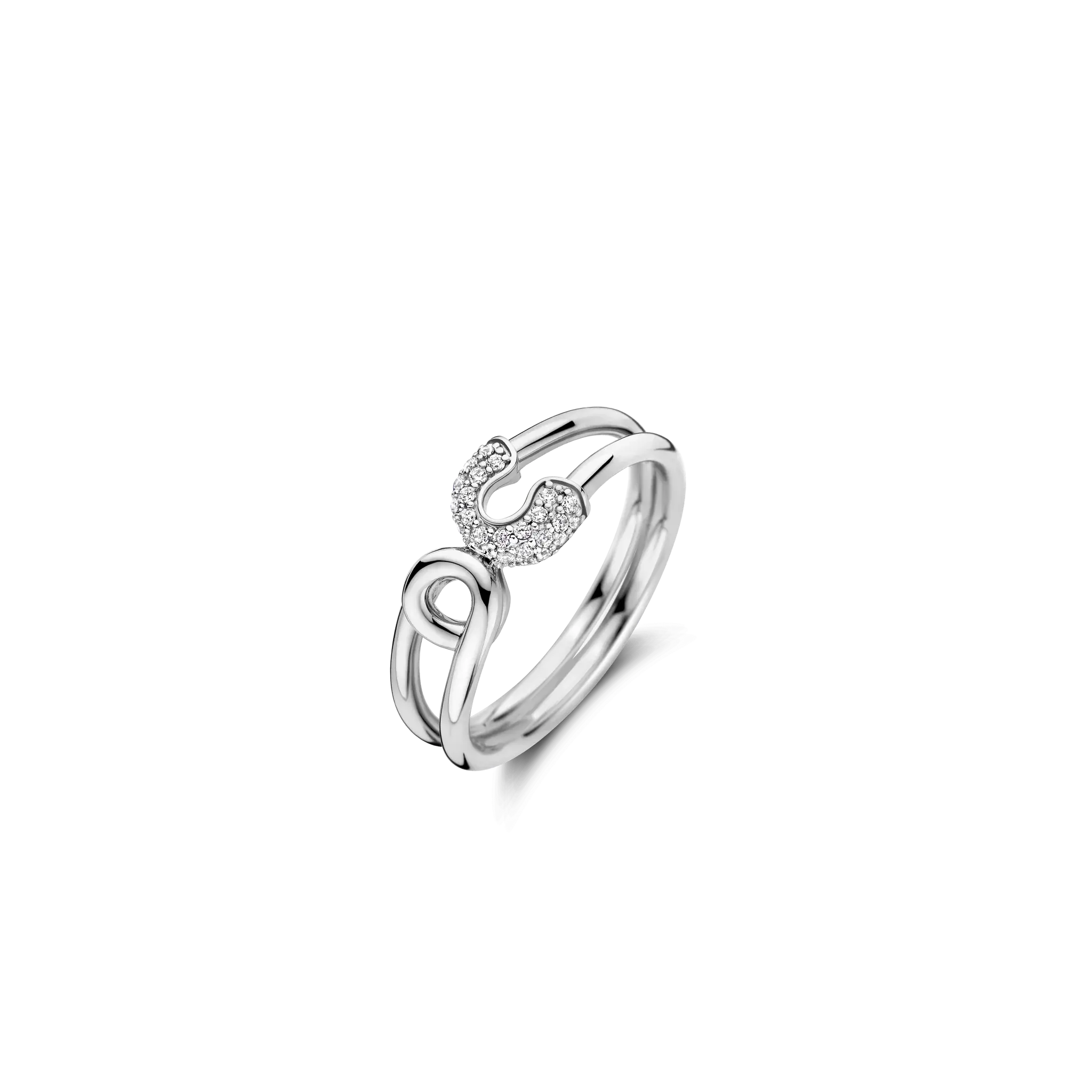 Confectionnée en argent sterling 925 et sublimé par un pavé de zircones cubiques de haute qualité, cette bague s’inspire de l’iconique épingle à nourrice, transformant son essence utilitaire en une véritable déclaration de mode.