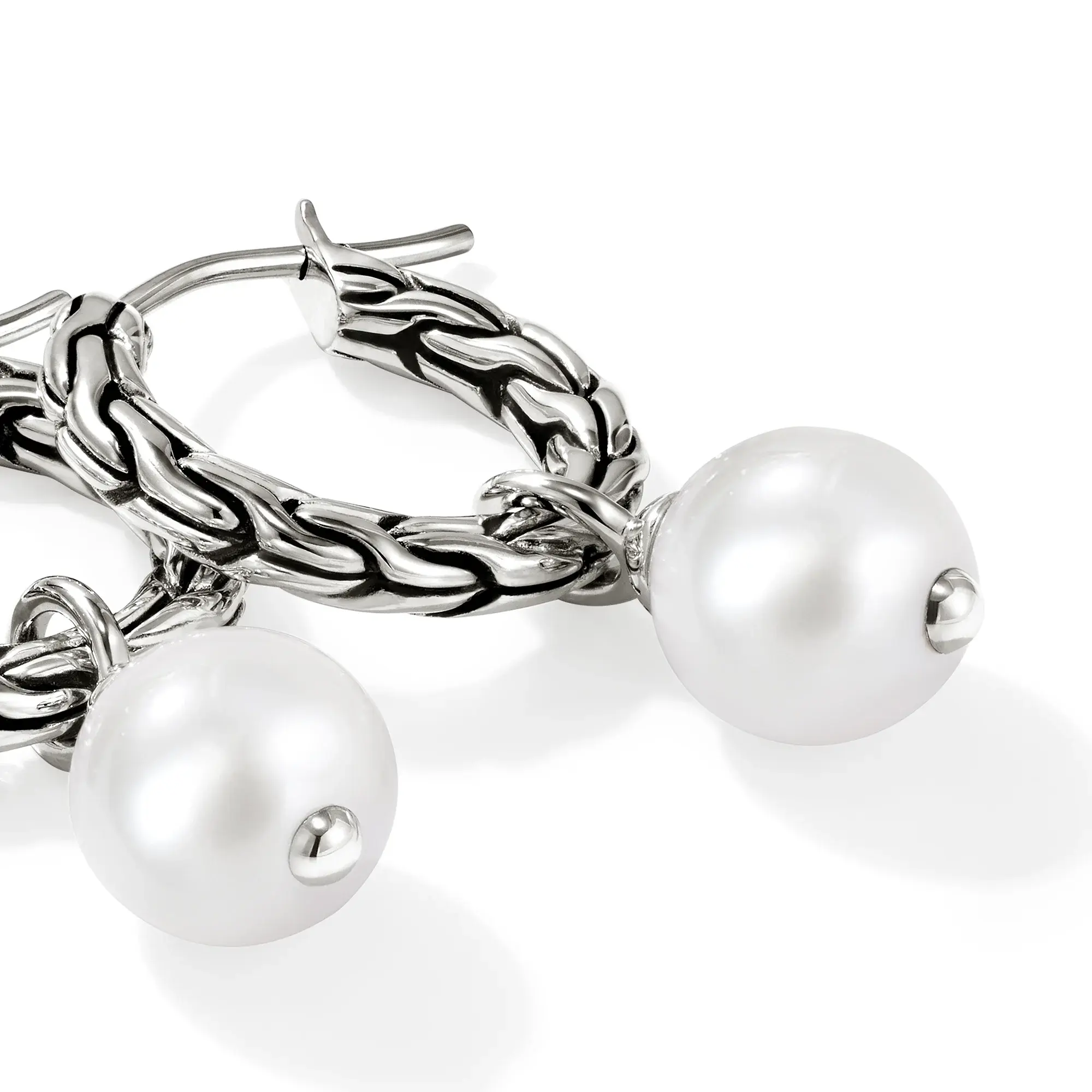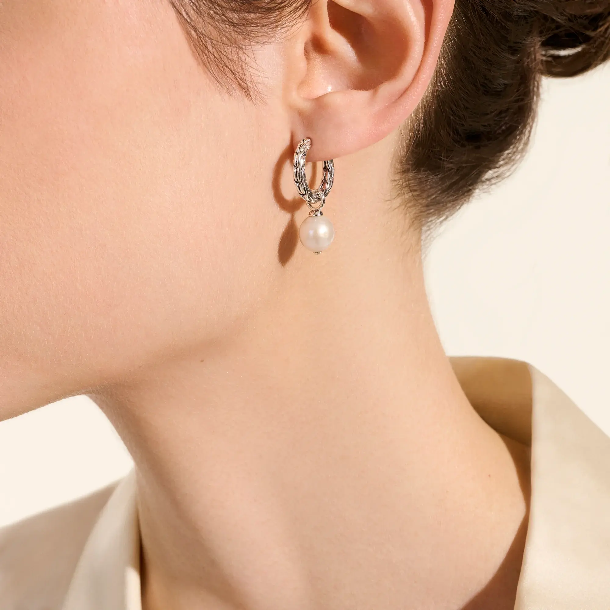 Créoles convertibles en argent sterling recyclé, ornées d’une perle d’eau douce sélectionnée avec soin. La perle est amovible, offrant deux styles en un. Façonnées à la main par des artisans. 16 mm