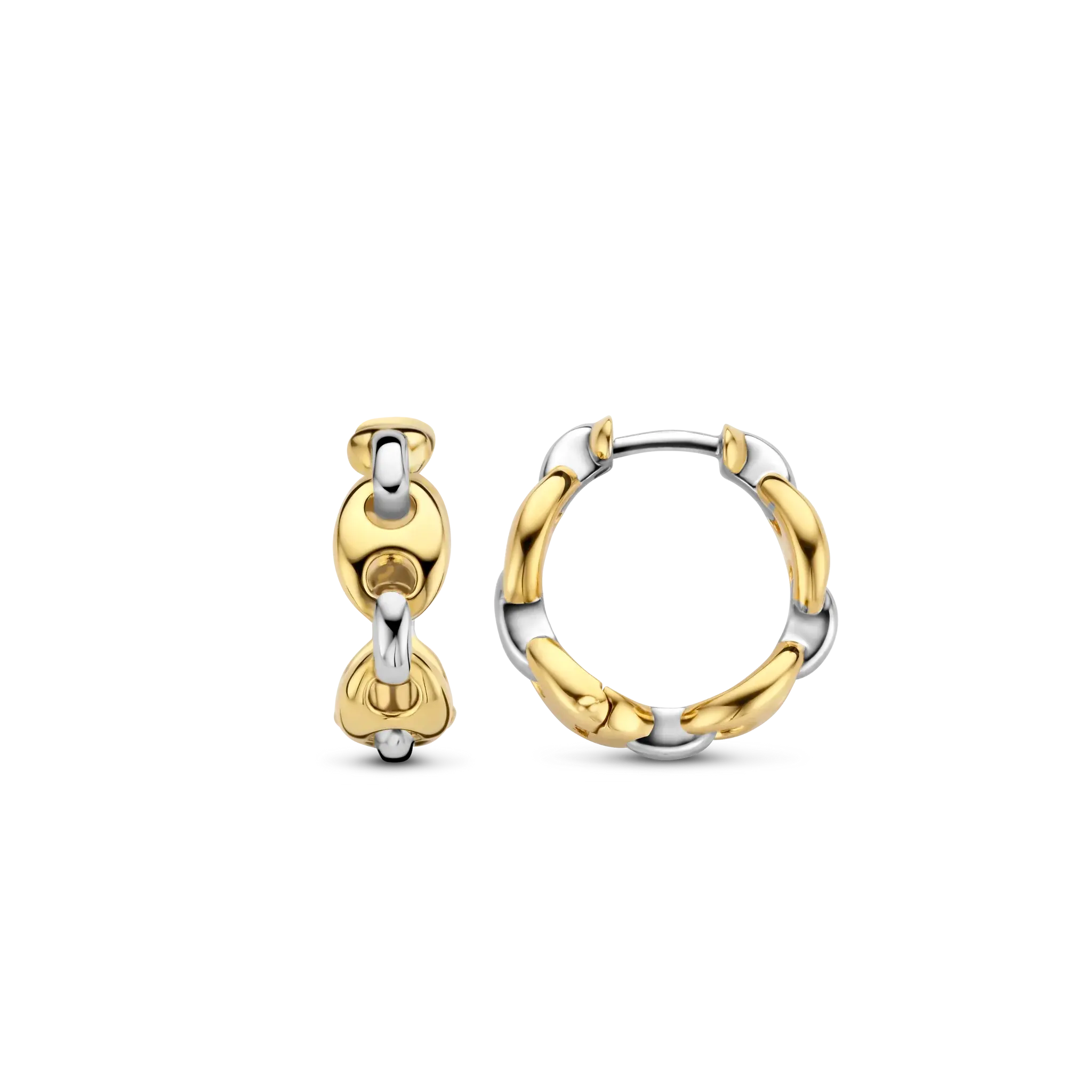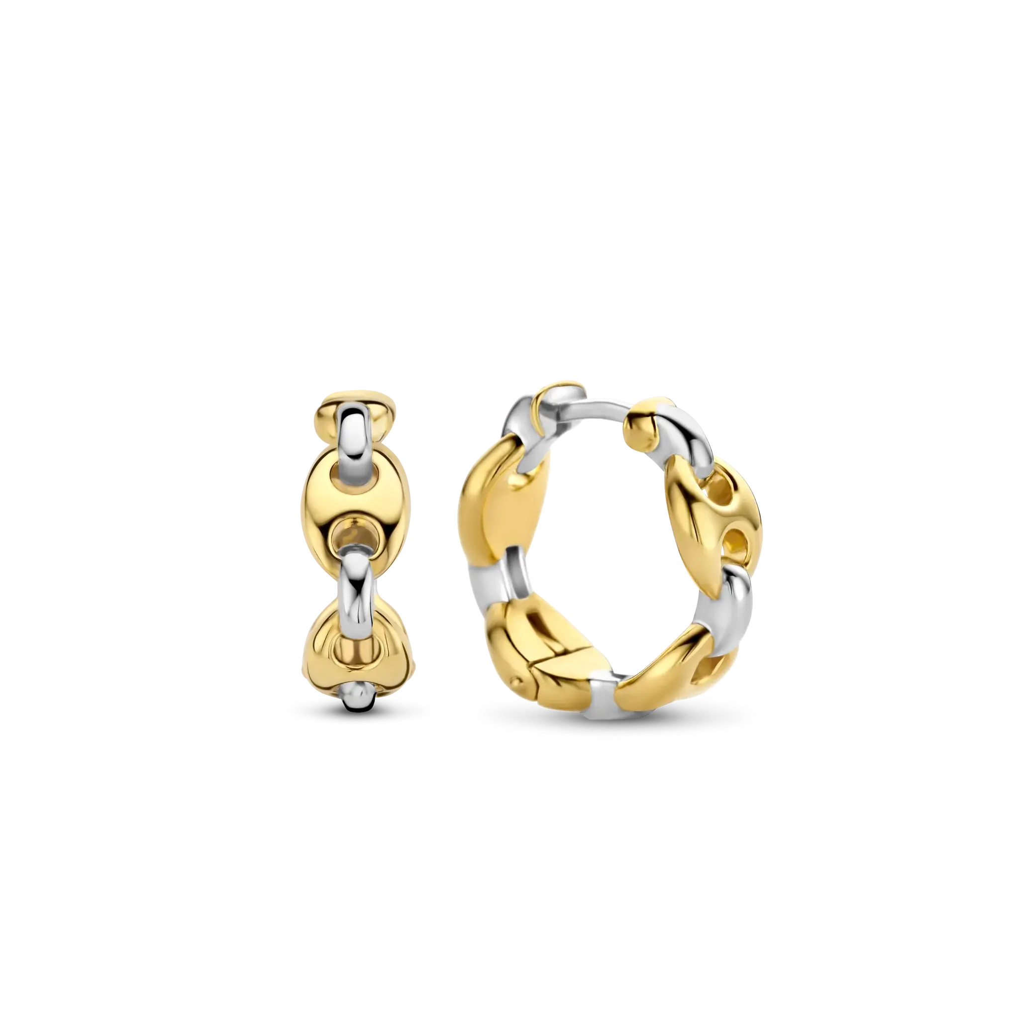 Ces boucles d’oreilles créoles TI SENTO en argent plaqué or présentent une succession de formes grains de café plaquées or. Confectionnées en argent sterling 925, les classiques grains de café sont réinterprétés ici avec une touche ludique et audacieuse.