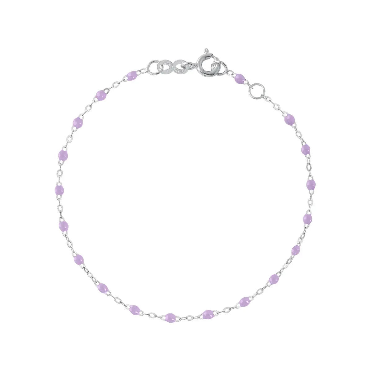 Le bracelet Classic Gigi de gigi CLOZEAU offre une nouvelle perspective, empreinte d’une touche d’inspiration colorée. Il est réalisé en or 18 carats et orné de jolies perles lilas. 17 cm
