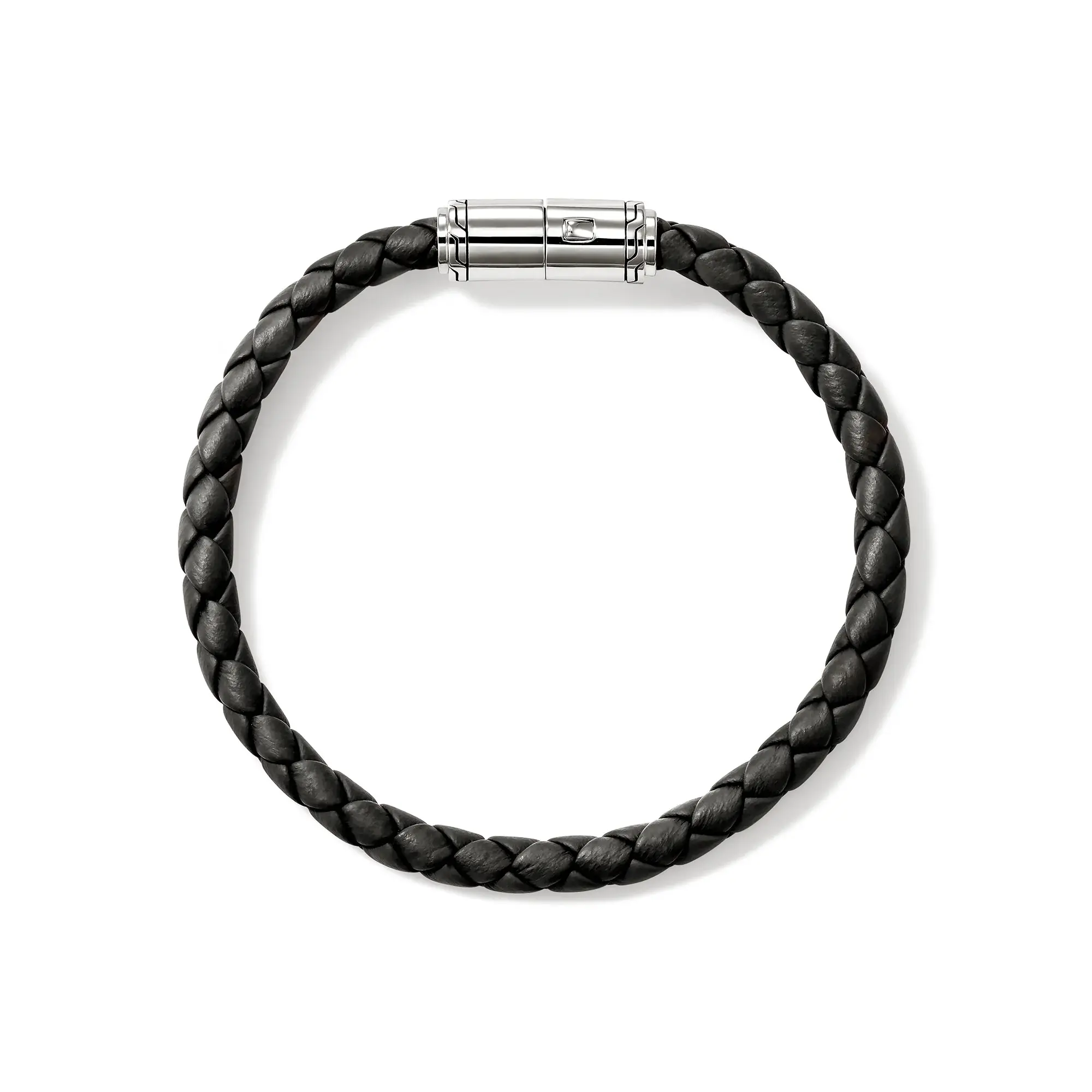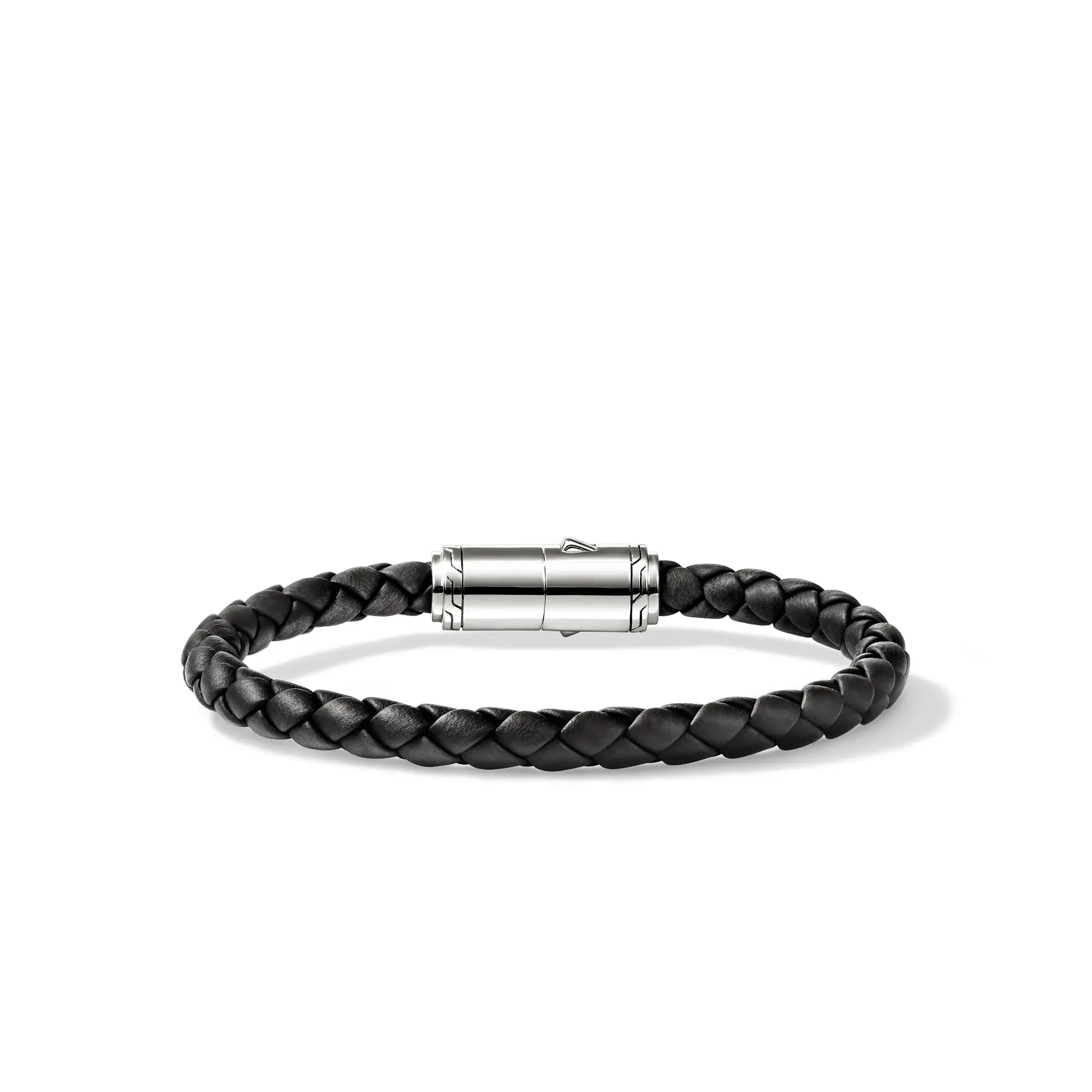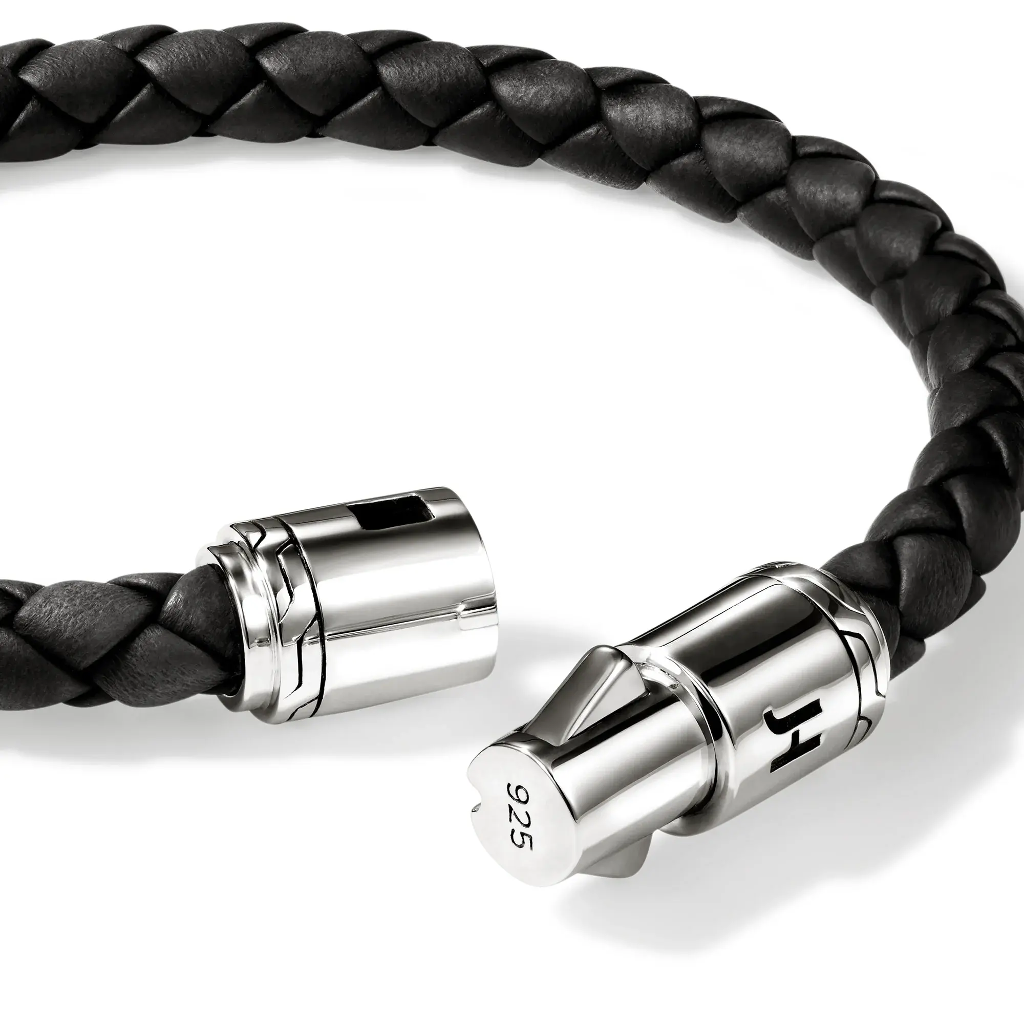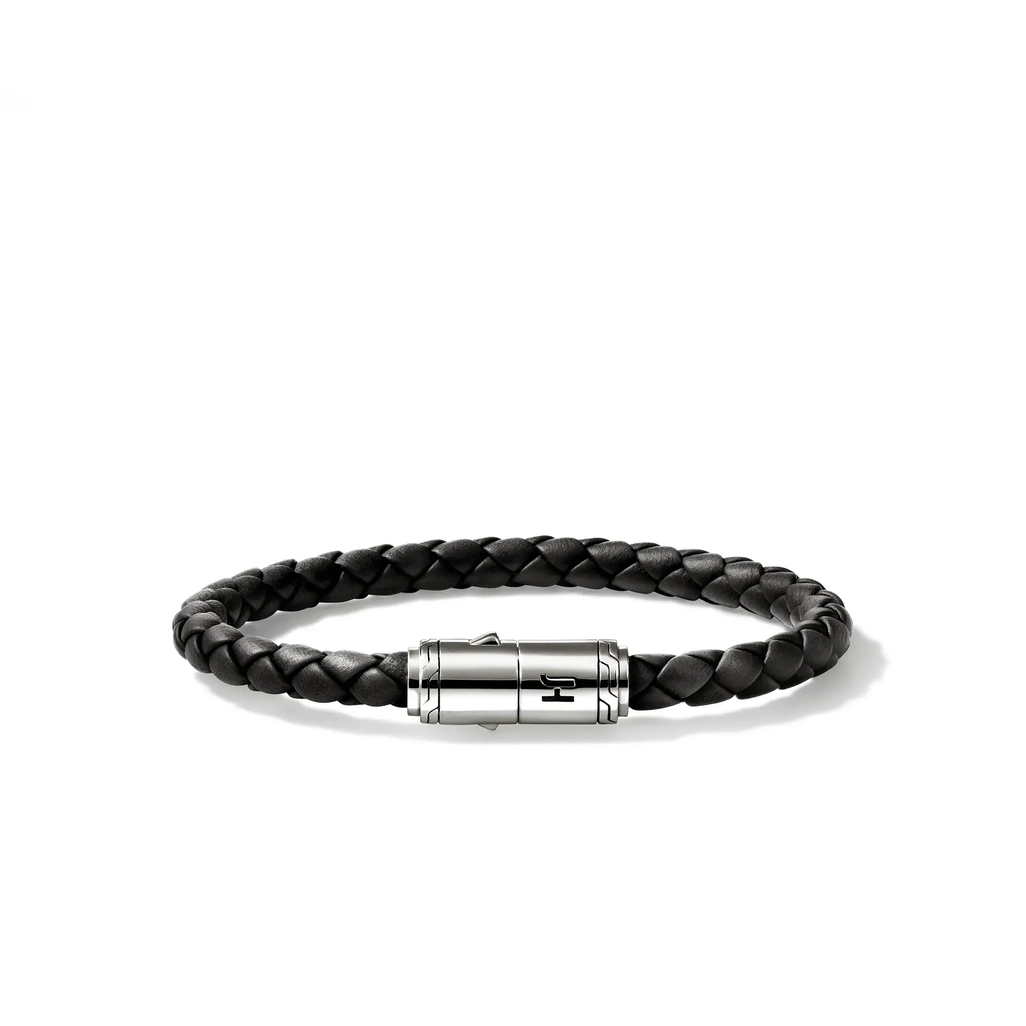L’artisanat rencontre la fonctionnalité. Doté d’un fermoir à poussoir ultra-sécurisé gravé du poinçon John Hardy, ce bracelet est façonné à la main en cuir véritable et en argent sterling recyclé.