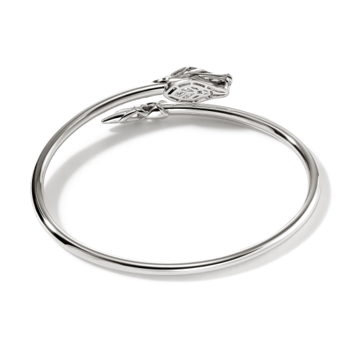 Bracelet manchette représentant le dragon Naga sculpté à la main — symbole légendaire d’amour, de protection et de prospérité. Façonné à la main par des artisans en argent sterling recyclé, orné de saphirs bleus provenant de sources éthiques.