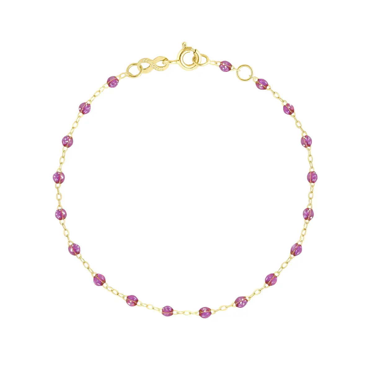 Le bracelet Classic Gigi de Gigi Clozeau apporte une perspective rafraîchissante, agrémentée d’une touche colorée. Il est réalisé en or 18 carats et orné de perles en résine précieuse couleur galaxy.