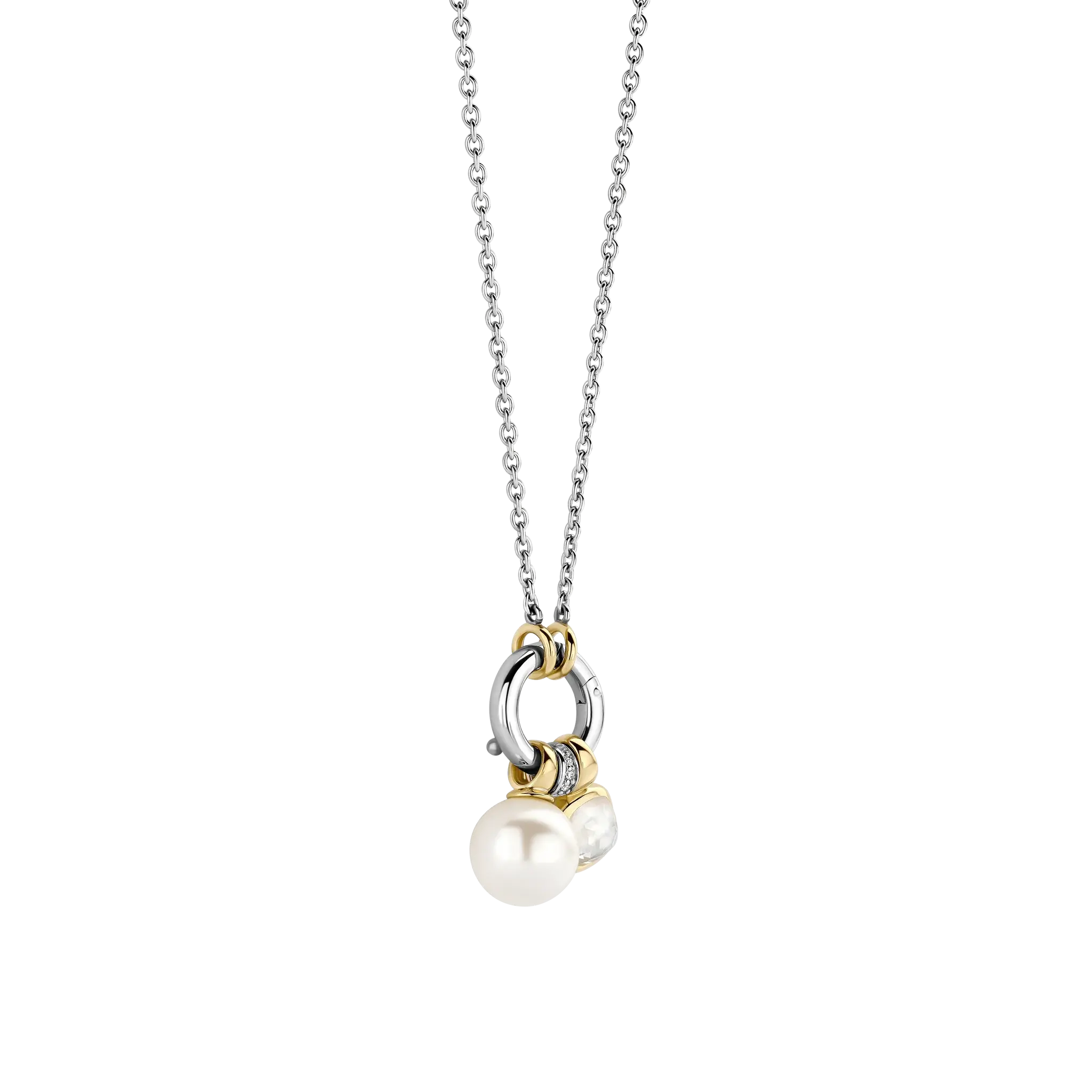 Collier argent plaqué or/perle