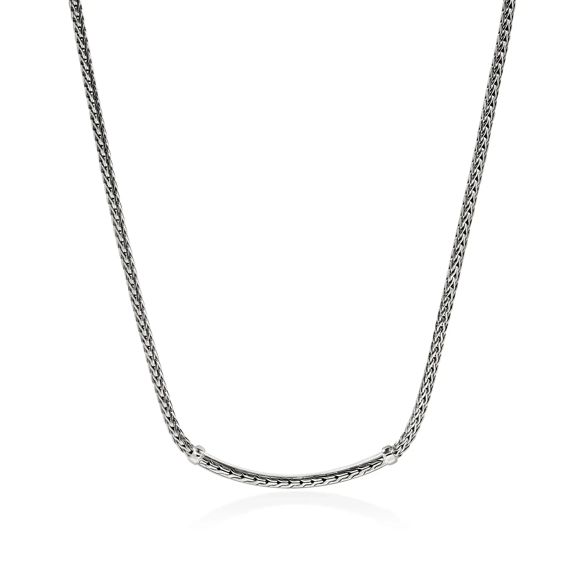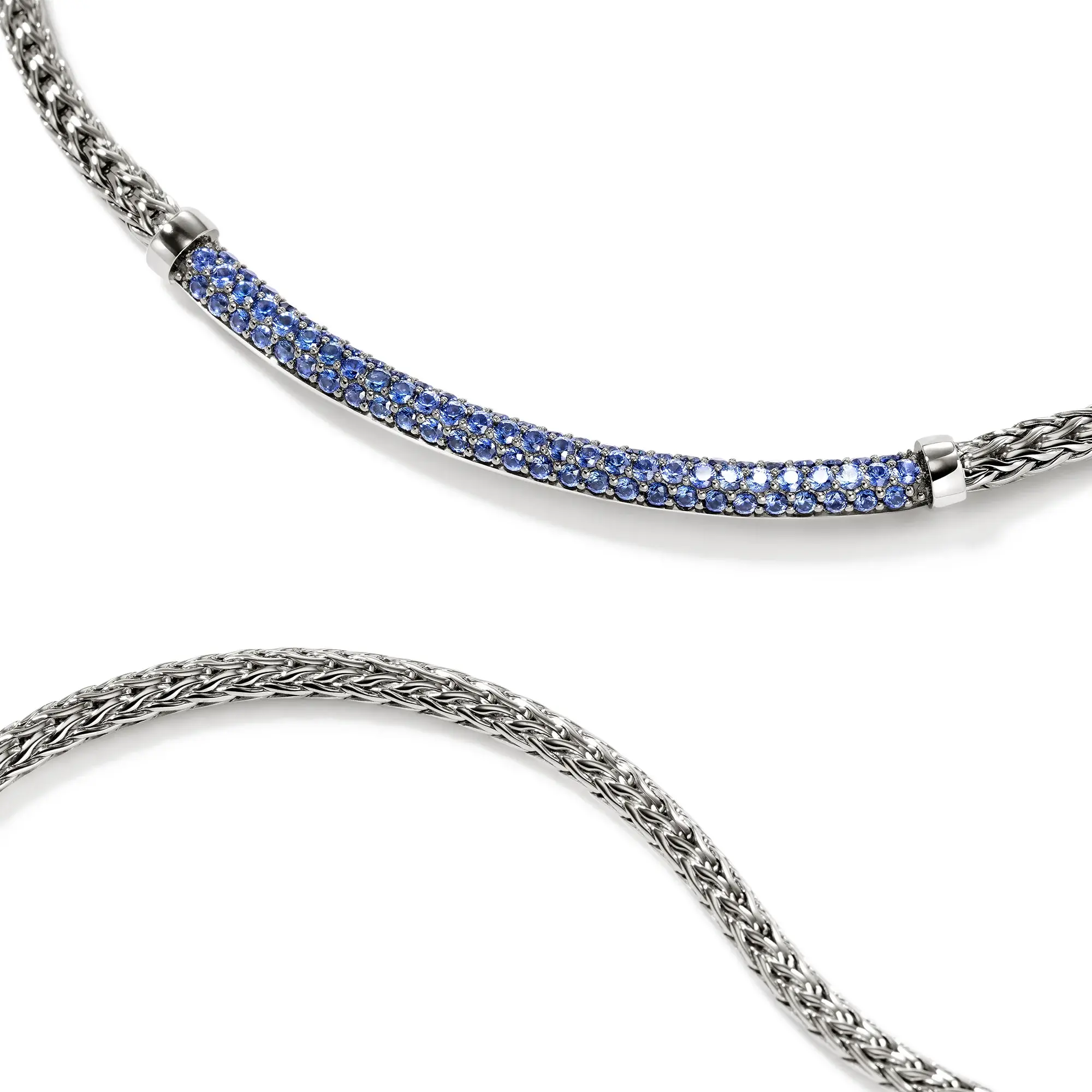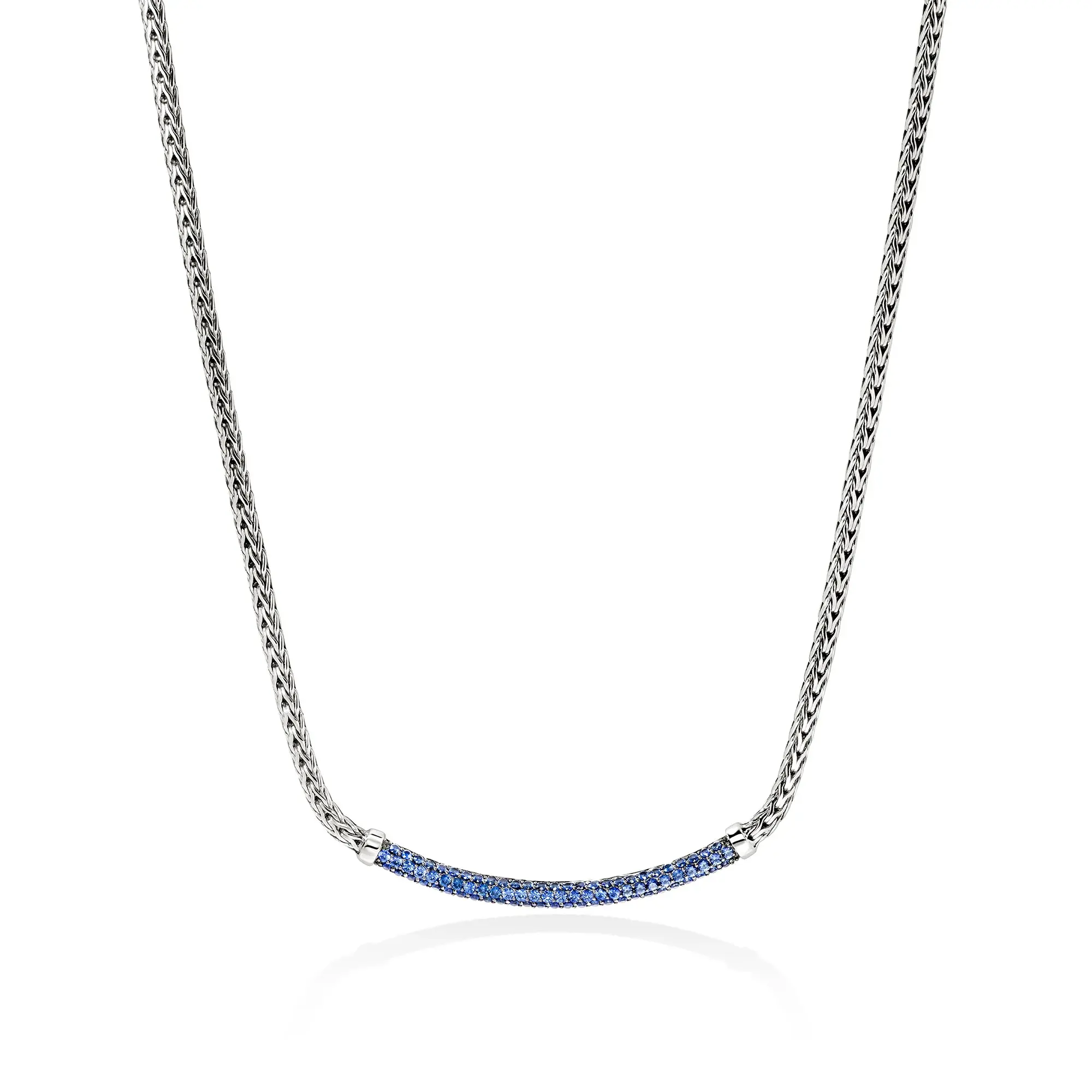 Ce délicat collier présente la chaîne tissée emblématique JH Essential de John Hardy, en argent sterling recyclé, ornée de saphirs bleus provenant de sources éthiques. Façonné à la main par des artisans. Chaîne : 2,5 mm — Longueur : 16 à 18 pouces.