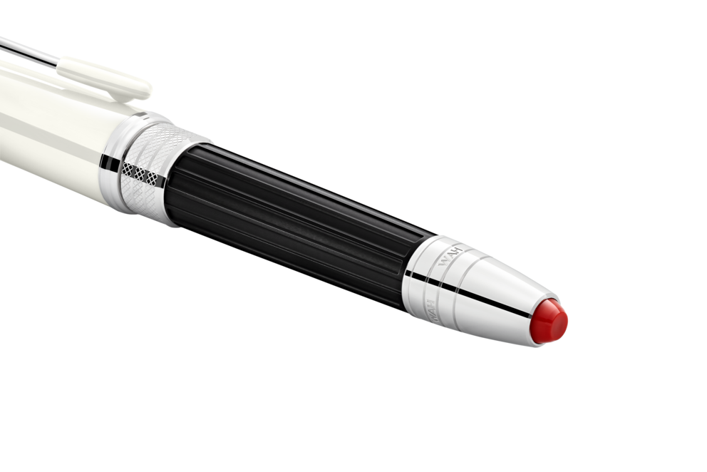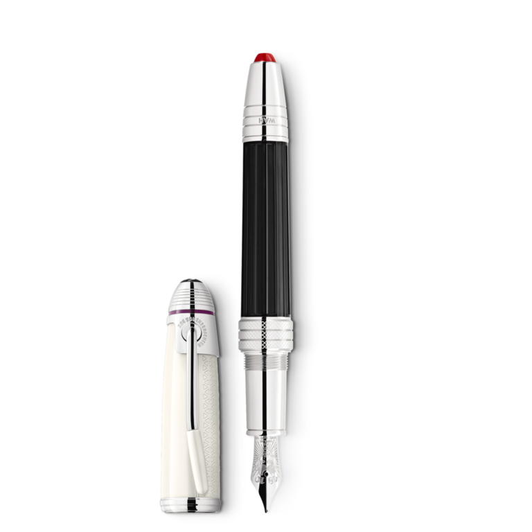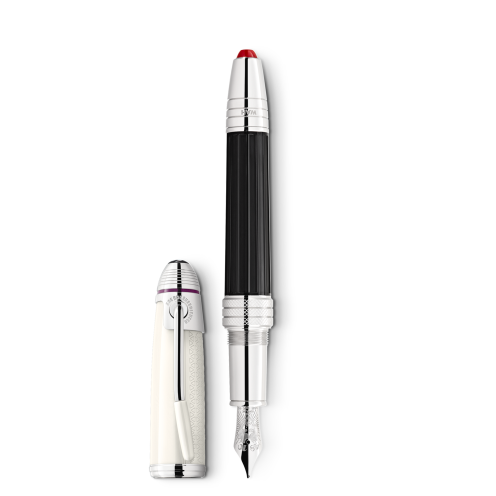 S'inscrireEn 2022, Montblanc rend hommage à un grand musicien du 20e siècle, considéré par beaucoup comme l'un des joueurs de guitare électrique les plus influents de toute l'histoire de la musique populaire : Jimi Hendrix. Le capuchon en résine précieuse blanc cassé est gravé d’un motif inspiré par l'une des sangles de guitare portée par Hendrix, tandis que le corps noir est orné d’un élégant motif rappelant une pédale wah-wah. L’agrafe platinée est inclinée à la manière du vibrato d'une guitare électrique. L’emblème Montblanc qui orne le sommet du capuchon est en résine précieuse. Autre détail remarquable : l’anneau du corps platiné, qui évoque un câble de guitare des années 1960, est gravé de la date d’un célèbre concert de Jimi Hendrix. La plume façonnée main en or Au 585/1000 rhodié est ornée d'un portrait de Jimi Hendrix.