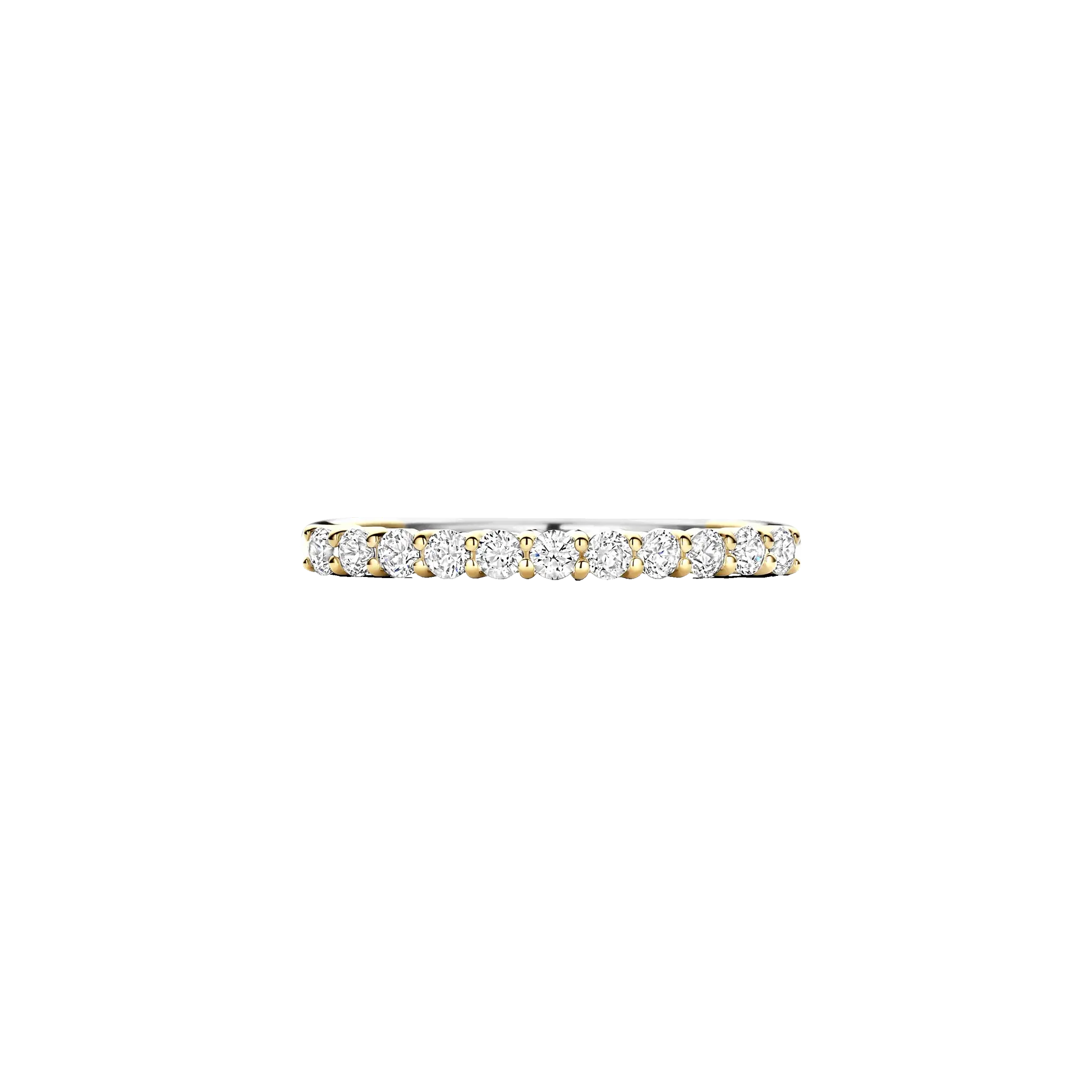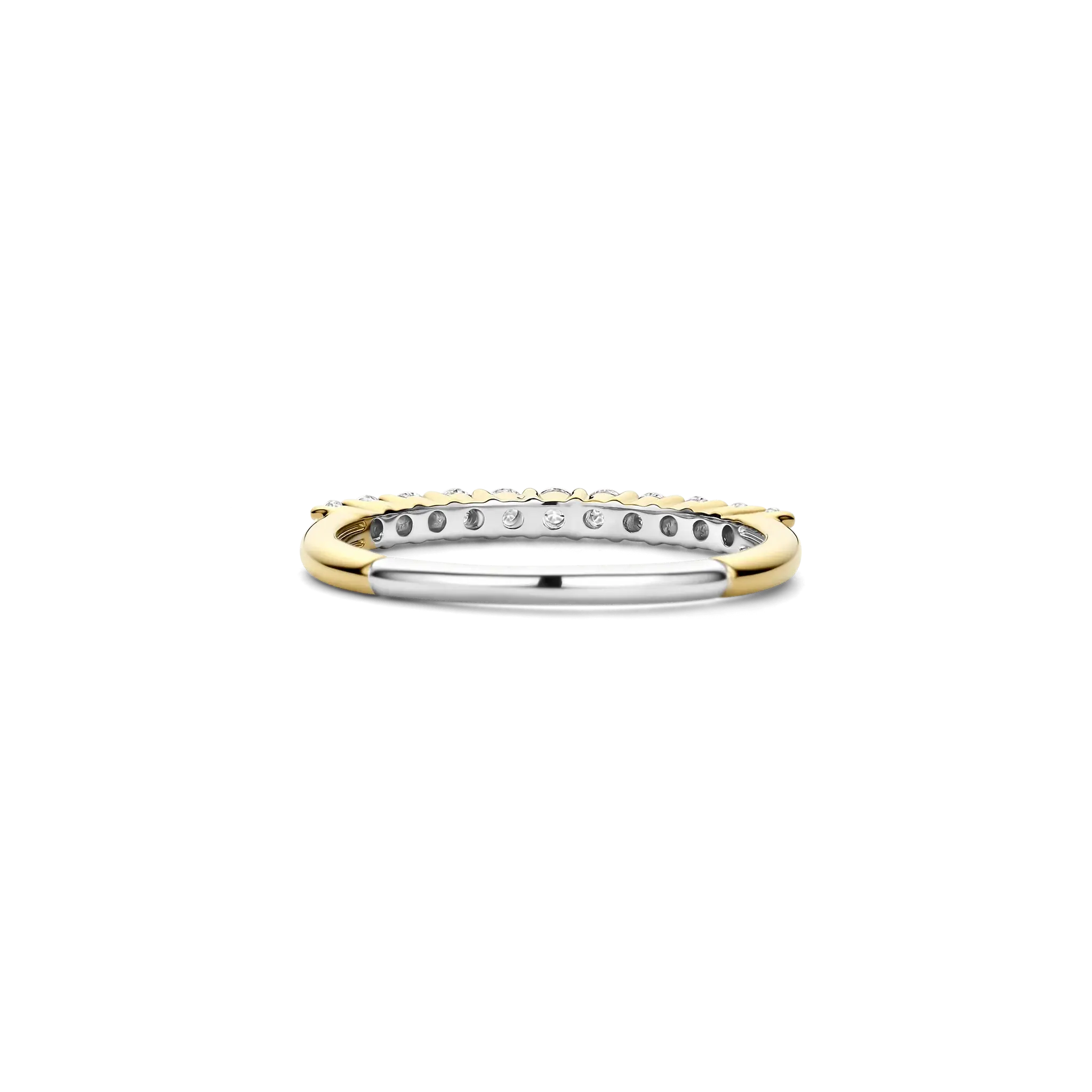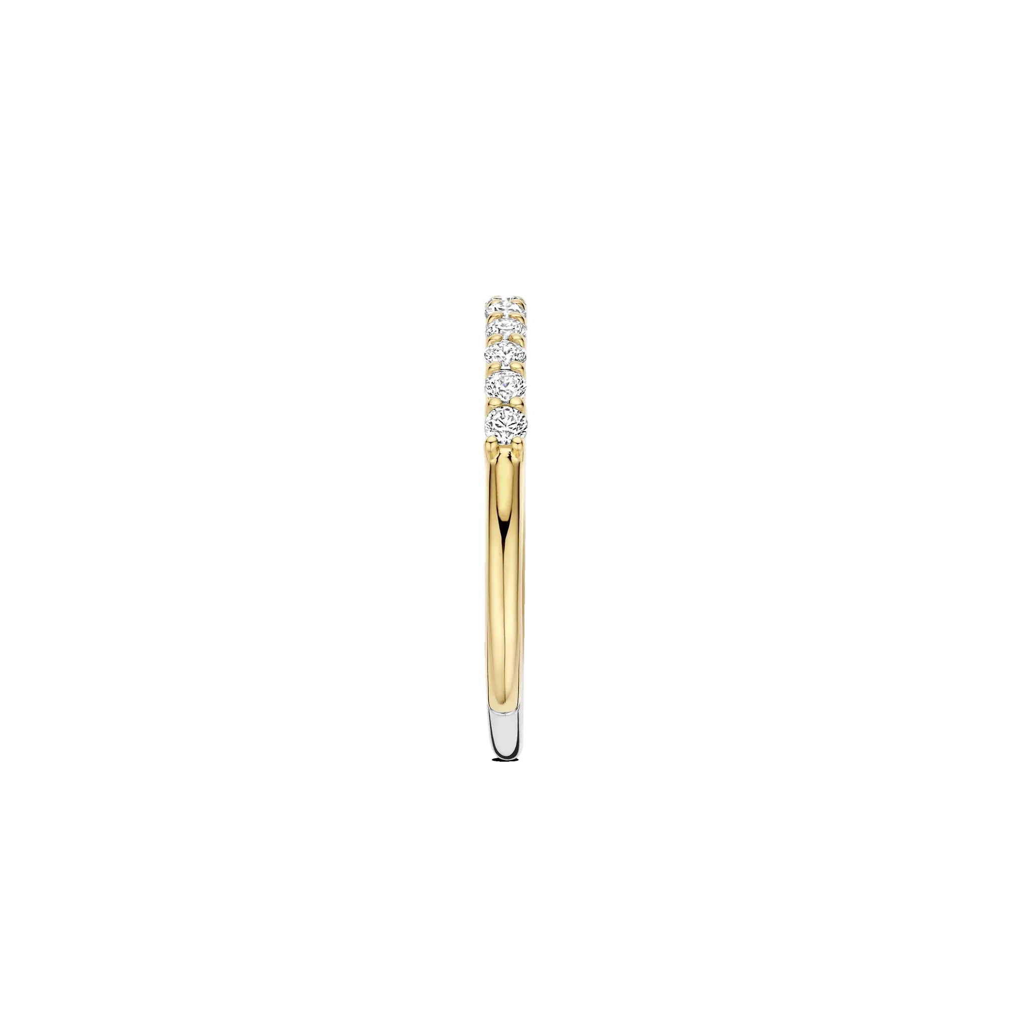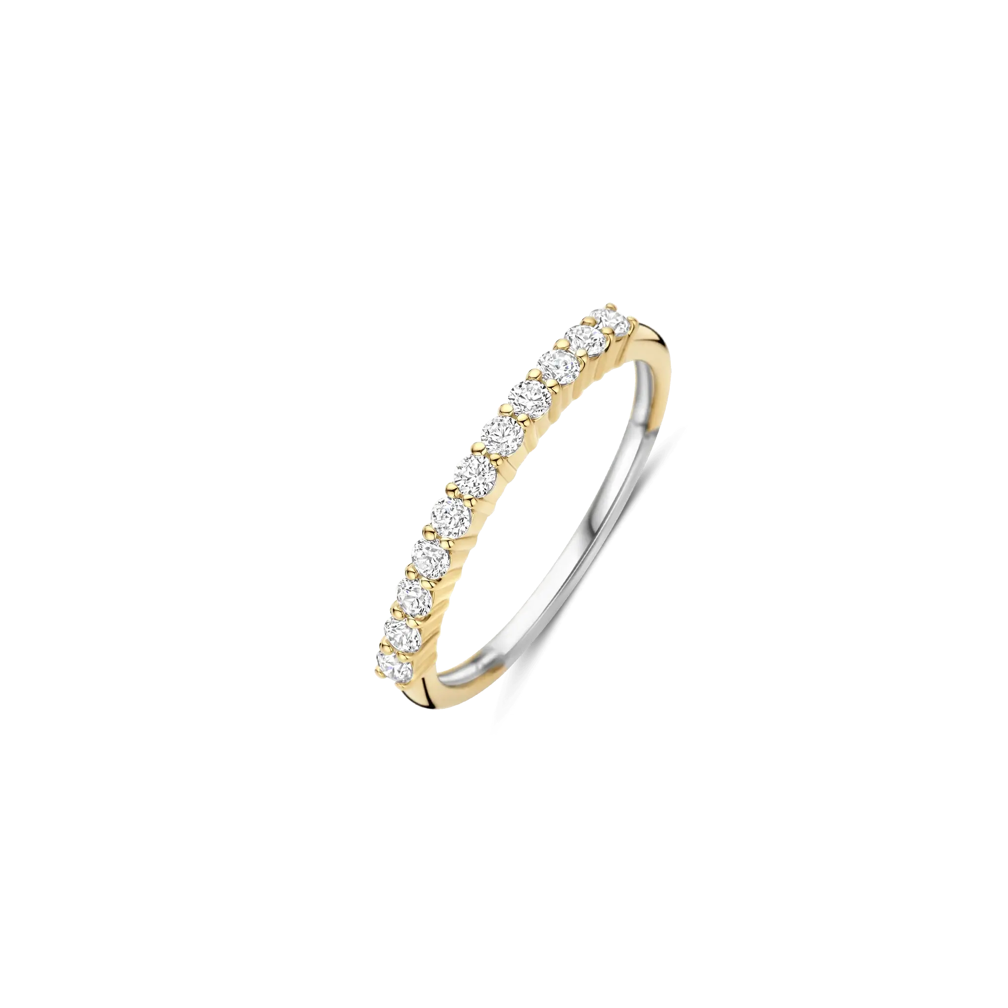 Adoptez un raffinement intemporel avec cette bague TI SENTO en argent plaqué or. Confectionnée en argent sterling 925 et habillée d’un éclatant plaquage or jaune, elle est couronnée d’un délicat ruban de petites zircones blanches scintillantes.