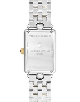 S'inscrireDécouvrez la montre Classics Art Deco Carrée, une pièce horlogère qui allie l’héritage classique à une touche moderne. Son boîtier distinctif de 28 x 20,70 mm, en acier inoxydable poli et plaqué or jaune avec des flancs cannelés, capture l’essence du style Art Déco. Au cœur de cette montre bat le mouvement à quartz FC-200, garantissant une précision irréprochable et une autonomie de batterie exceptionnelle de 72 mois. Le cadran en nacre blanche, agrémenté d’un guilloché argenté central et de chiffres romains noirs, offre une lisibilité parfaite grâce à ses aiguilles noires. Protégée par un verre saphir convexe anti-reflets résistant aux rayures et étanche jusqu’à 3 ATM, cette montre est complétée par un bracelet en maille milanaise bicolore, en acier inoxydable et plaqué or jaune, pour un confort et un style intemporels.