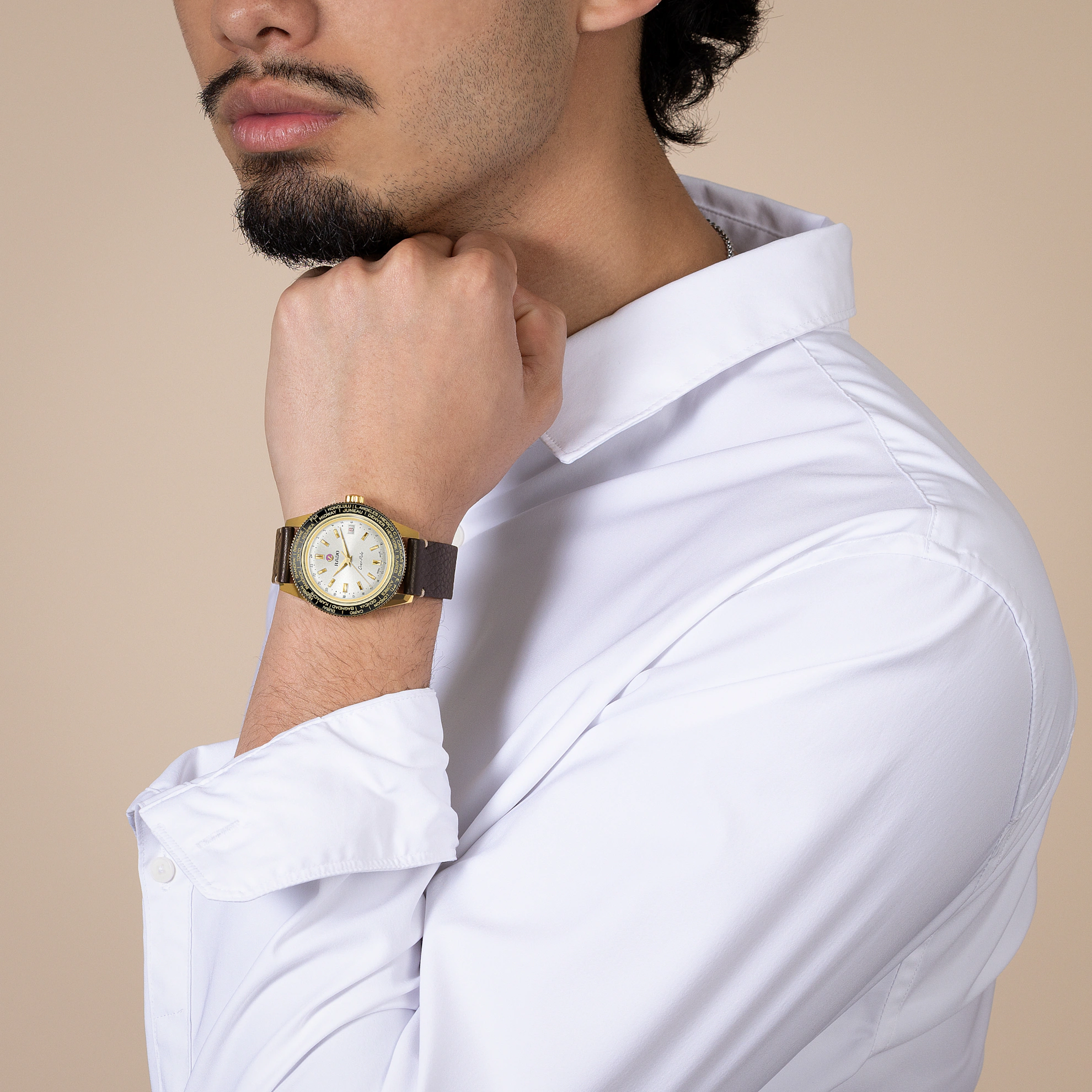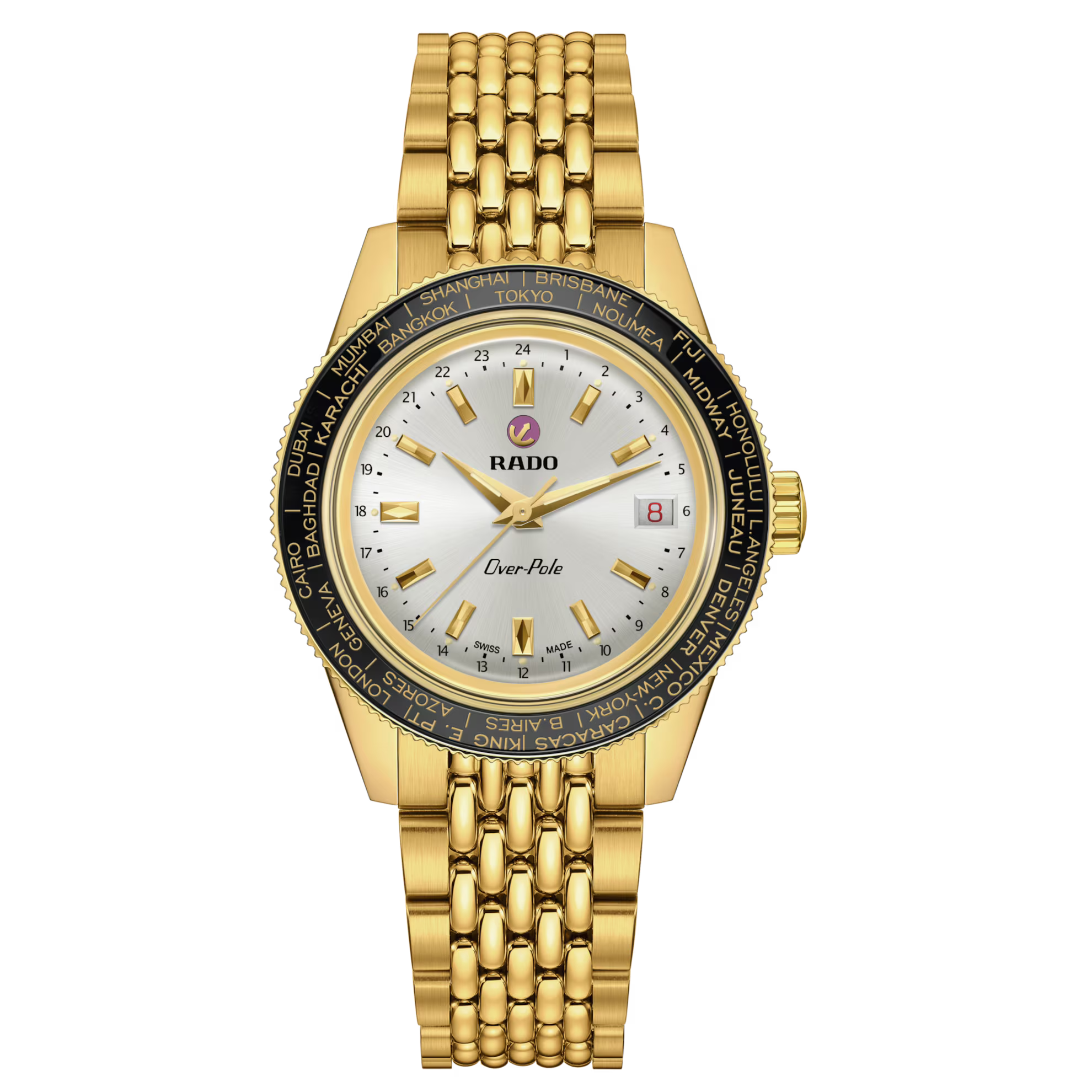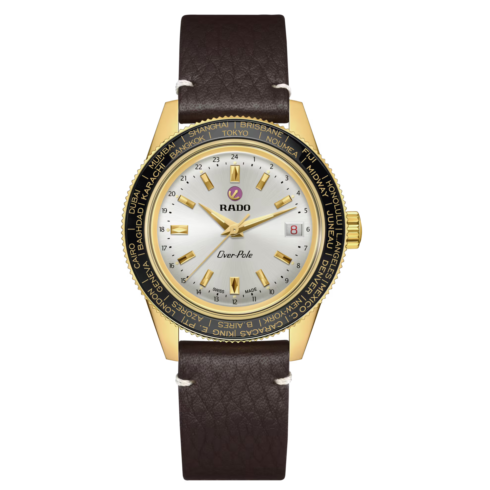 S'inscrireLa Captain Cook Over-Pole est de retour ! Une superbe nouvelle Édition Limitée reprend les caractéristiques clés des versions précédentes. Logé dans un boîtier audacieux de 39 mm, le mouvement Worldtimer R862 à remontage manuel assure robustesse et précision. La finition Côtes de Genève, les vis bleuies et les détails dorés sont facilement admirables à travers le fond de boite en verre saphir. Aussi élégant que raffiné, ce nouveau modèle est équipé d'un bracelet en acier inoxydable PVD or jaune avec une boucle déployante triple. Grâce au système Easy-Clip de Rado, le bracelet peut être facilement remplacé par un bracelet en cuir marron robuste.
