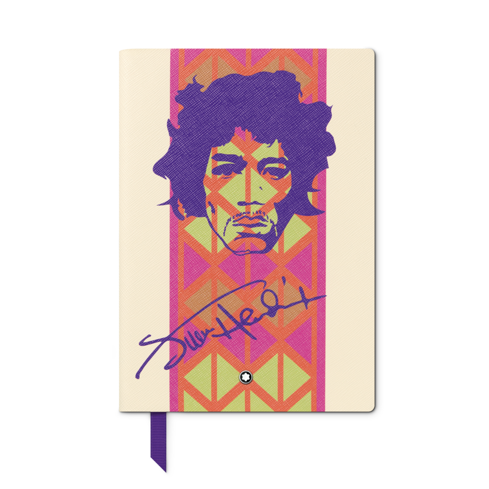 S'inscrireCarnet Montblanc #146 petit format, Great Characters Jimi Hendrix, blanc, ligné Fabriqué en Italie. 96 feuilles / 192 pages. Dimensions 150 x 210 mm. Le design du carnet Great Characters Jimi Hendrix s'inspire de la sangle, de l'image et de la signature de la guitare d'Hendrix. La page intérieure spéciale contient la liste des morceaux du concert que Jimi Hendrix a joué à Woodstock en 1969.