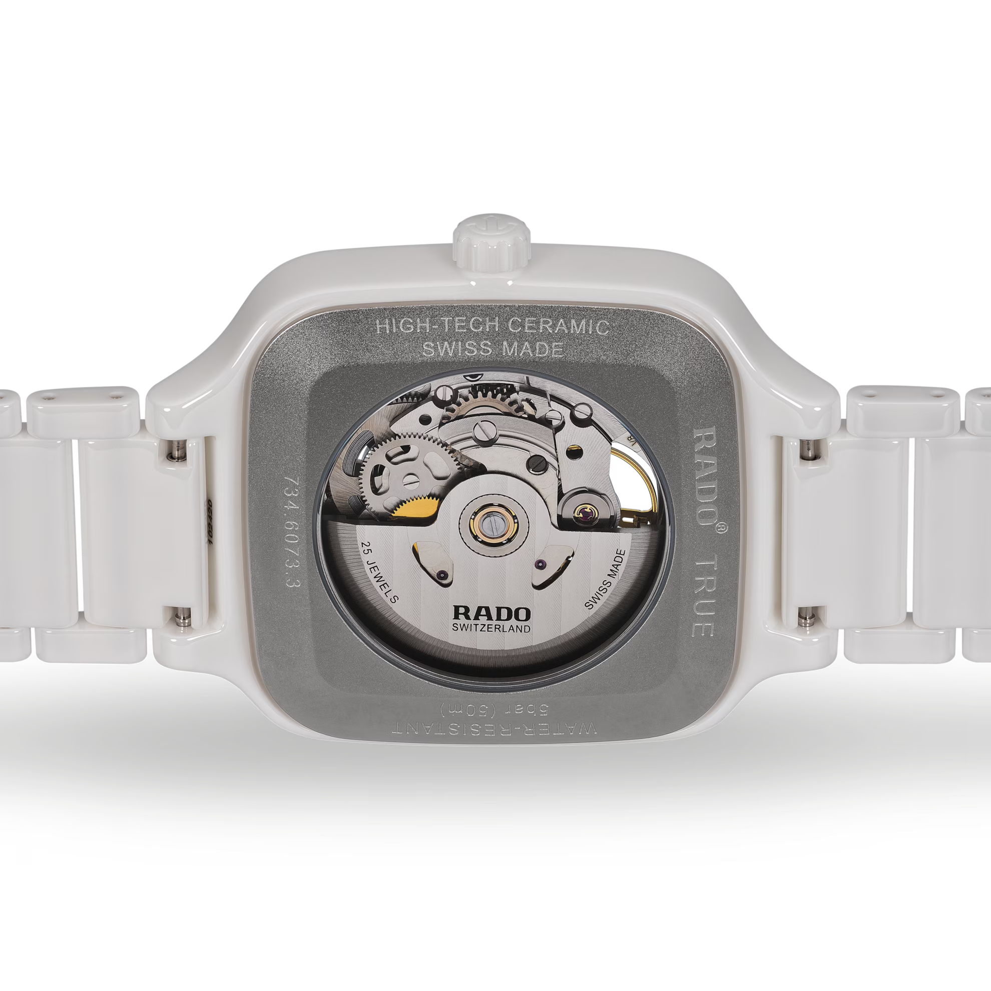 La True Square est une nouvelle approche de la forme emblématique Rado. La première montre fabriquée à partir d'un boîtier carré monobloc injecté en céramique haute technologie, la True Square est légère, résistante aux rayures et confortable au poignet.
